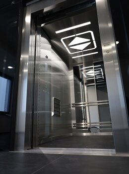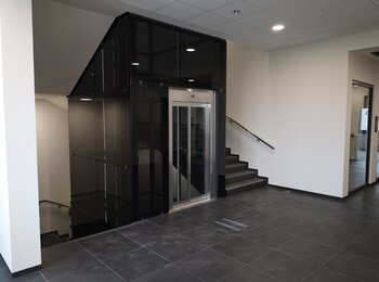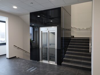 Osobní trakční výtah OTV 1250 , prosklená šachta, proklená klec