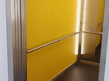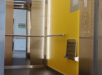 Lůžkový výtah pro domov se sociální péčí. Nosnost 1600kg, ložná plocha klec 1400x2450x2200, rychlost 1.0 m/s